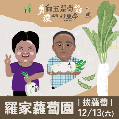 與妻子一同務農多年經驗,這幾年經營「羅家蘿蔔園」數年,已有忠實粉絲每年固定來拔蘿蔔,也與農會合作參加產銷履歷驗證多年。拔蘿蔔當天都會提供老蘿蔔雞湯給大家享用,讓民眾有賓至如歸的回家。