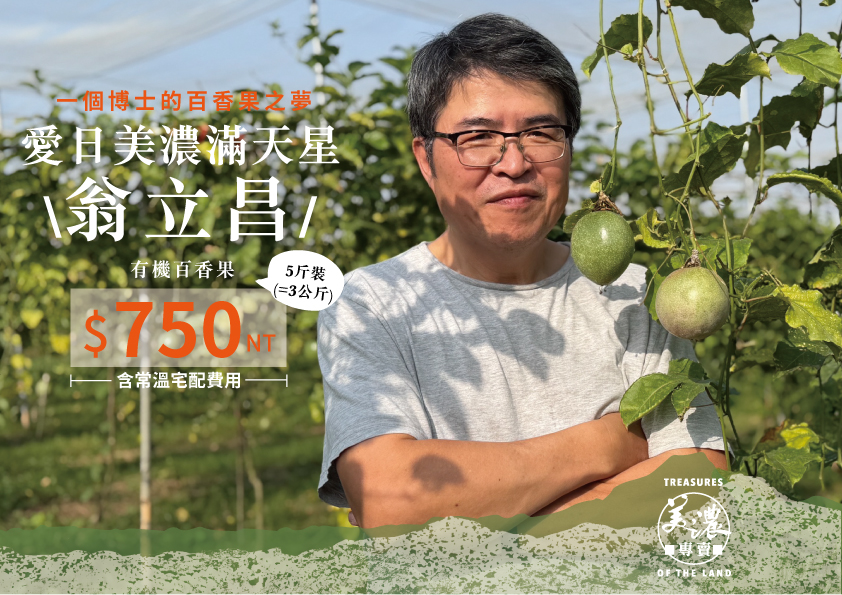 翁立昌是個討厭考試、喜歡讀書,從小充滿好奇心的知識追求者,在務農這條路上亦是如此。他樂於把農場當作實驗教室,嘗試各種綠色資材、改進有機農法,為的就是等待滿天星百香果發光的那一天。