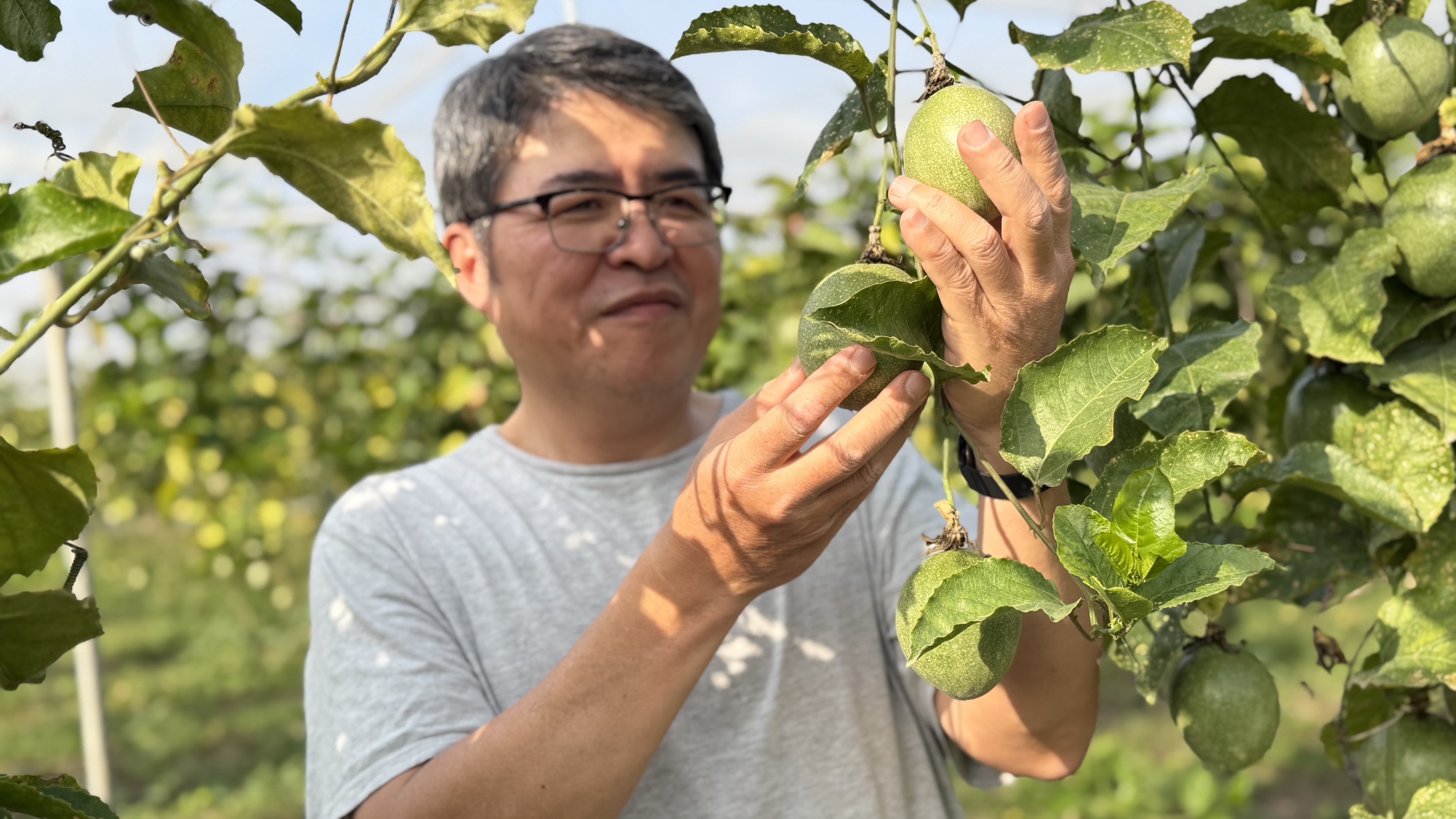 在美濃平原的南方有一座「愛日美濃有機農場」,主人是擁有高學歷也獨立創業開發智慧農業的翁立昌博士。從2022年開始在農場裡勞動,翁博「士」全力投入栽種有機百香果,現在已經搖身一變成為翁博「土」,成功種出健康安全的「滿天星」。